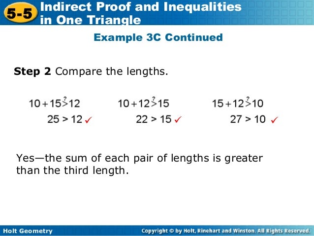 If three points a, b, c are collinear and b is between a and c… segments or angles that have the same measure (used when you s… It is said that ptolemy asked him if geometry could be learned without reading the elements, to which euclid replied, there is no royal road to geometry.'' Among the many methods available to mathematicians are proofs, or logical arguments that begin with a premise and arrive at a conclusion. This tutorial looks at using an indirect proof to show that an equilateral triangle cannot have a right angle.