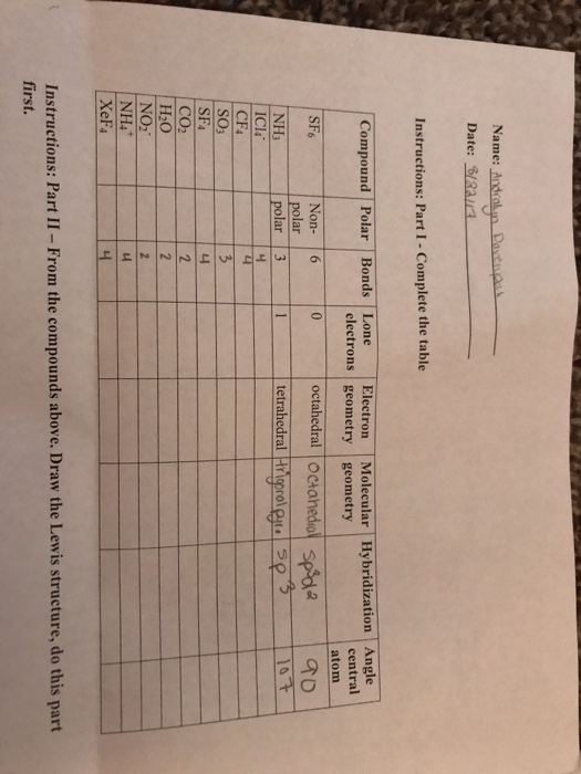 The electron pairs will be arranged as a trigonal bipyramid, with the lone pair in an equatorial position. The geometry of a molecule is an important factor that affects the physical and chemical properties of a compound. Determine the electron geometry for each molecule cf4 nf3 of2 h2s. Lewis electron structures predict the number and types of bonds, whereas vsepr can predict the shapes of many the vsepr model explains these differences in molecular geometry.